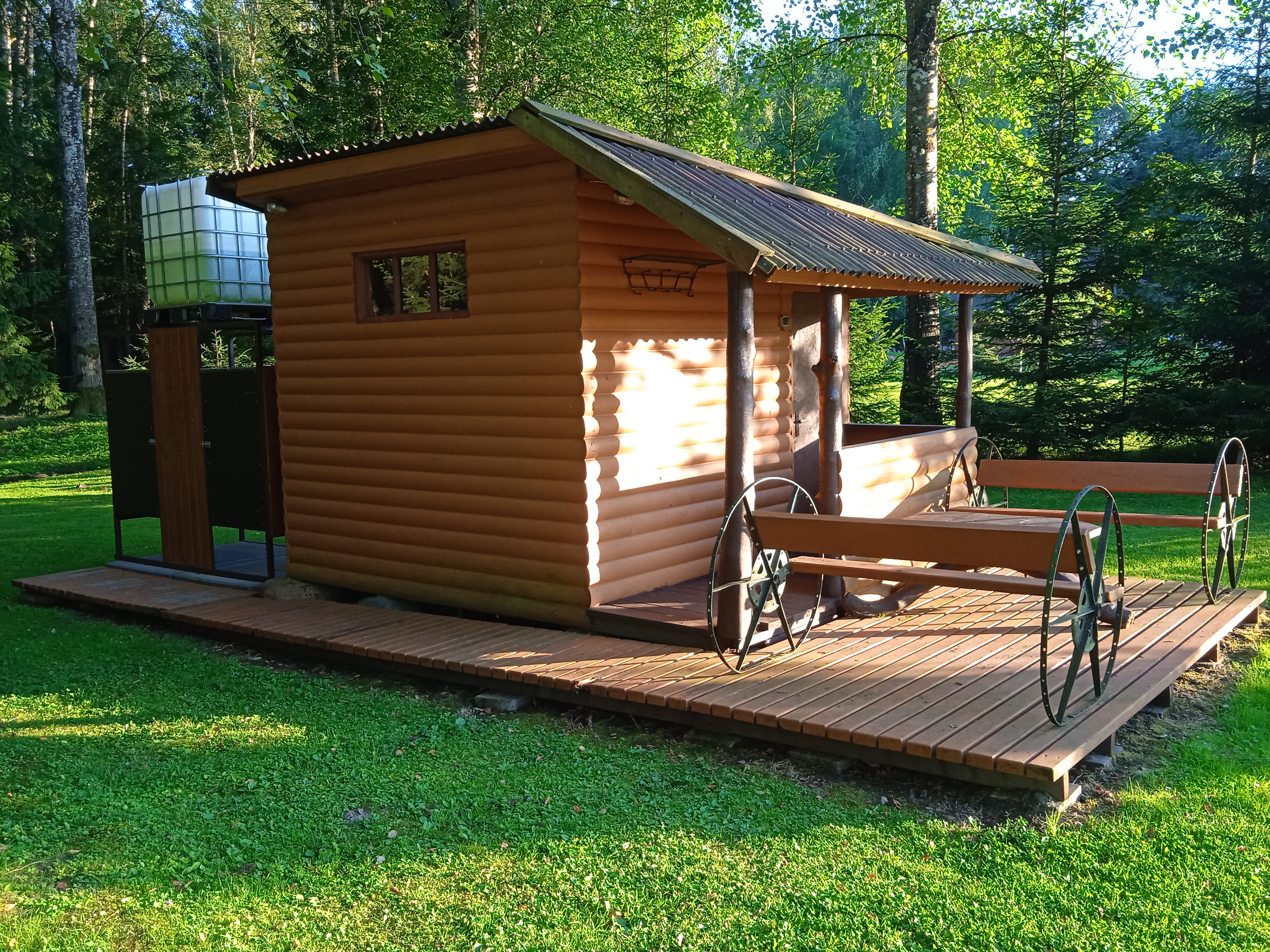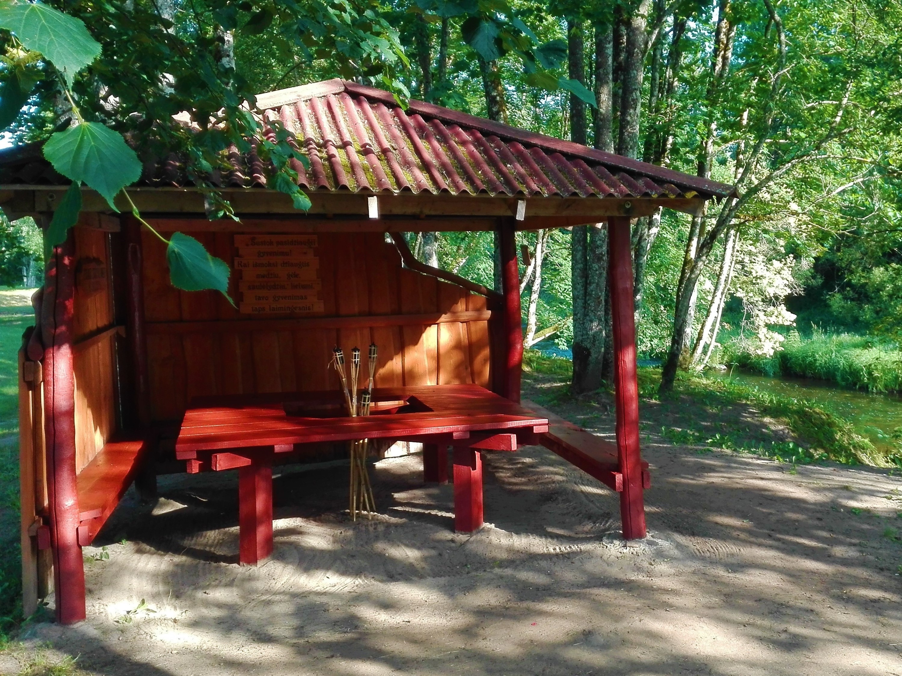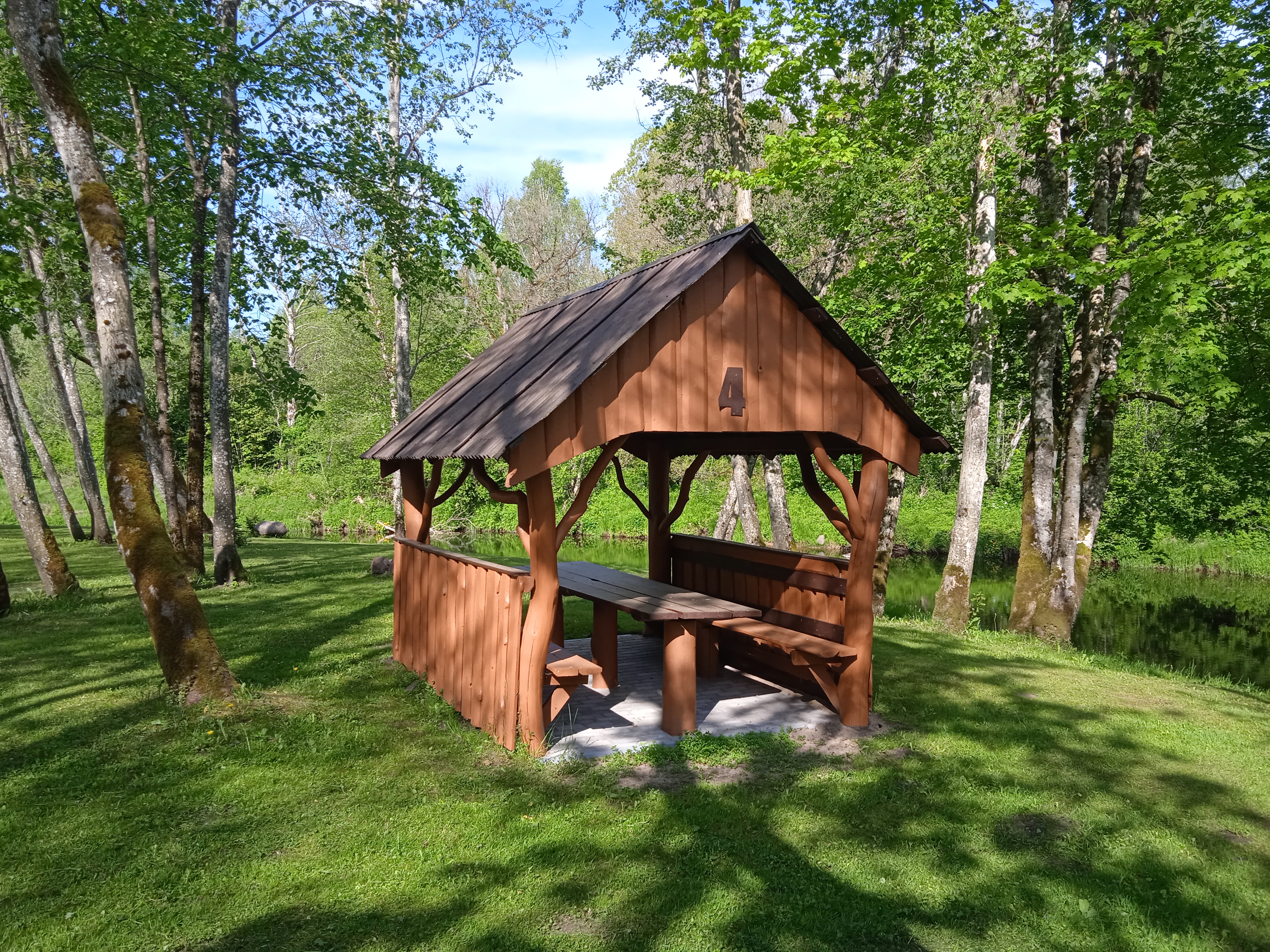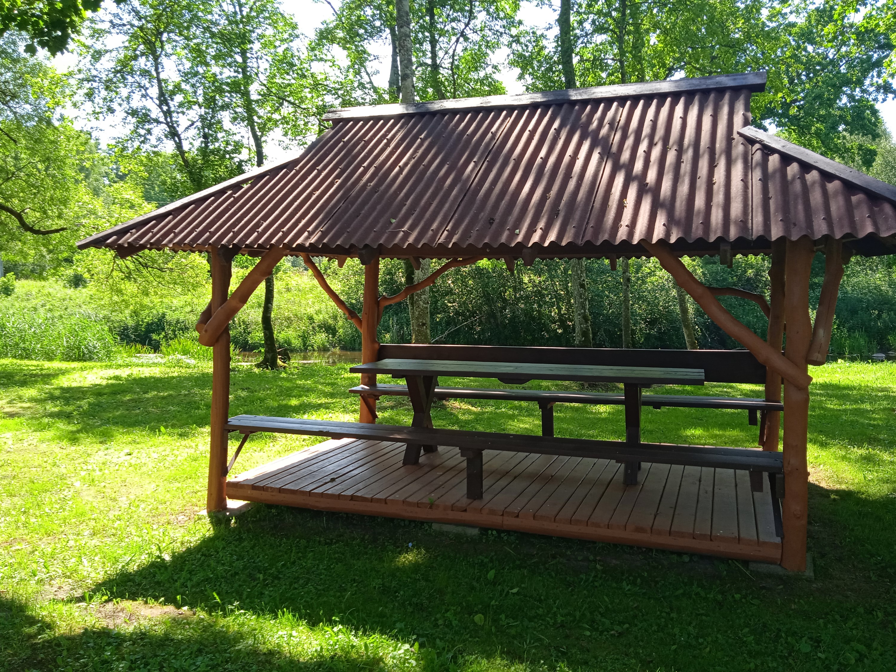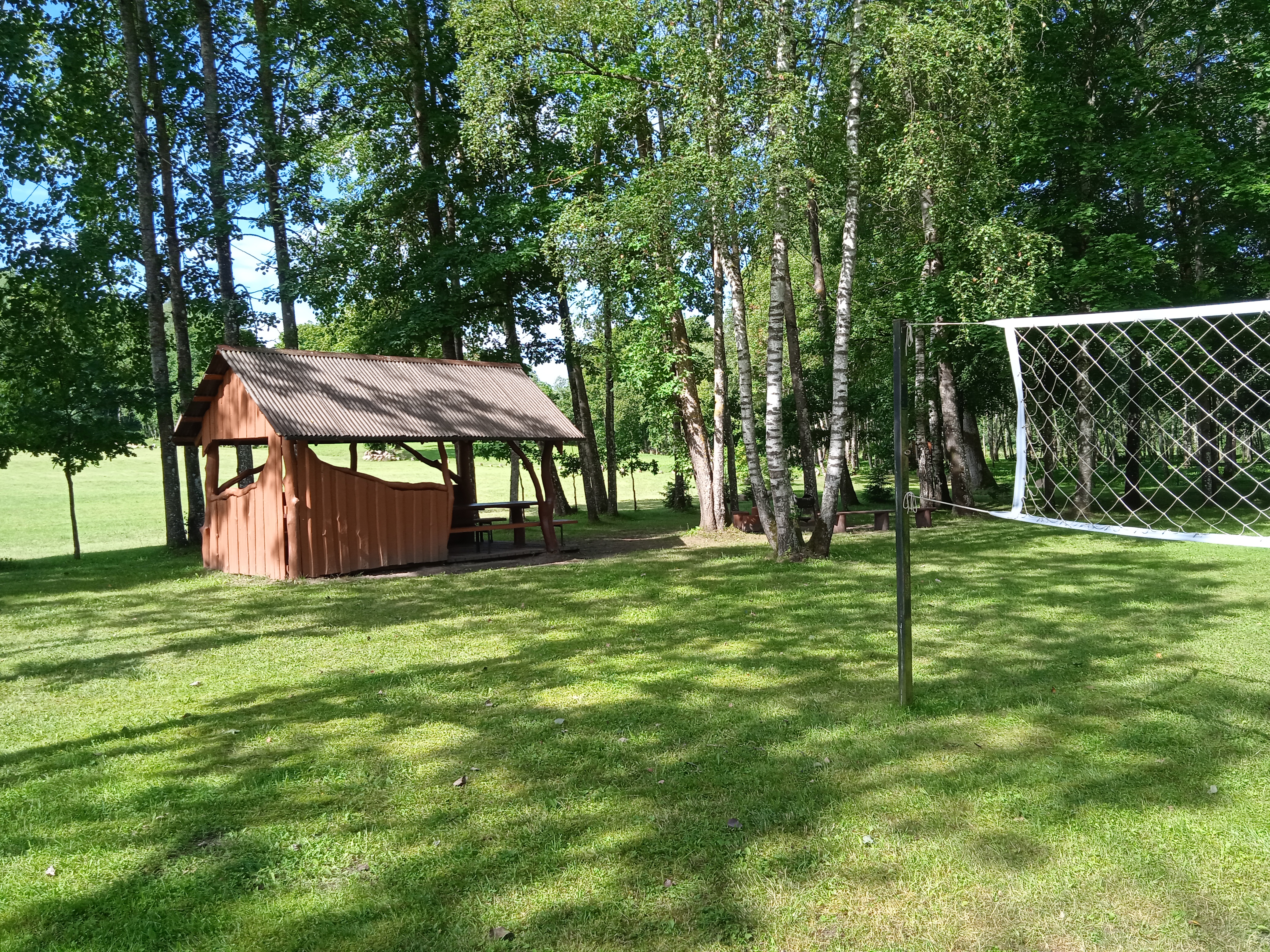 Pavėsinė ant upės kranto, telpa 15 žmonių. Šalia yra bendra tinklinio aikštelė, laužavietė, šašlykinė, bendras lauko WC.