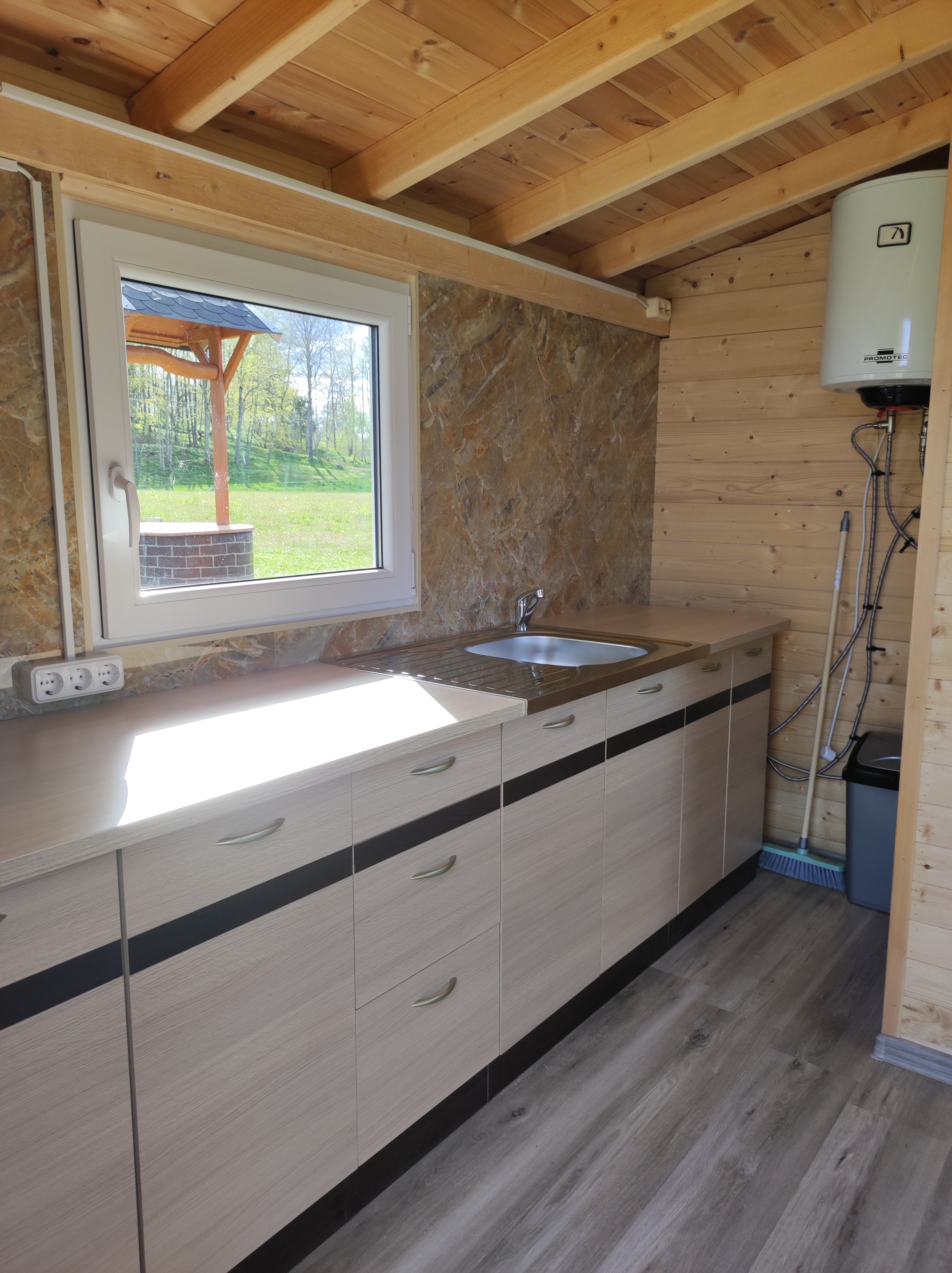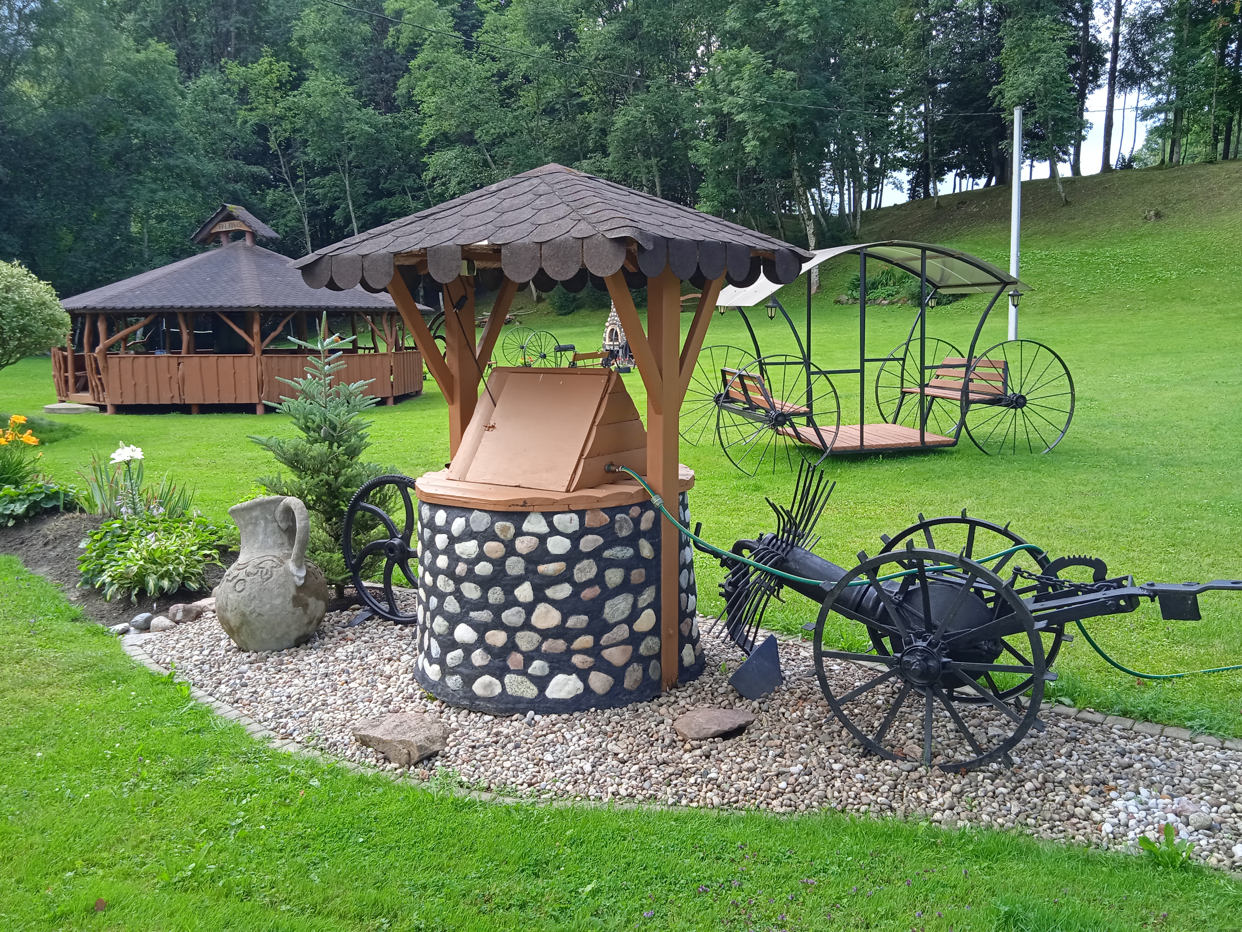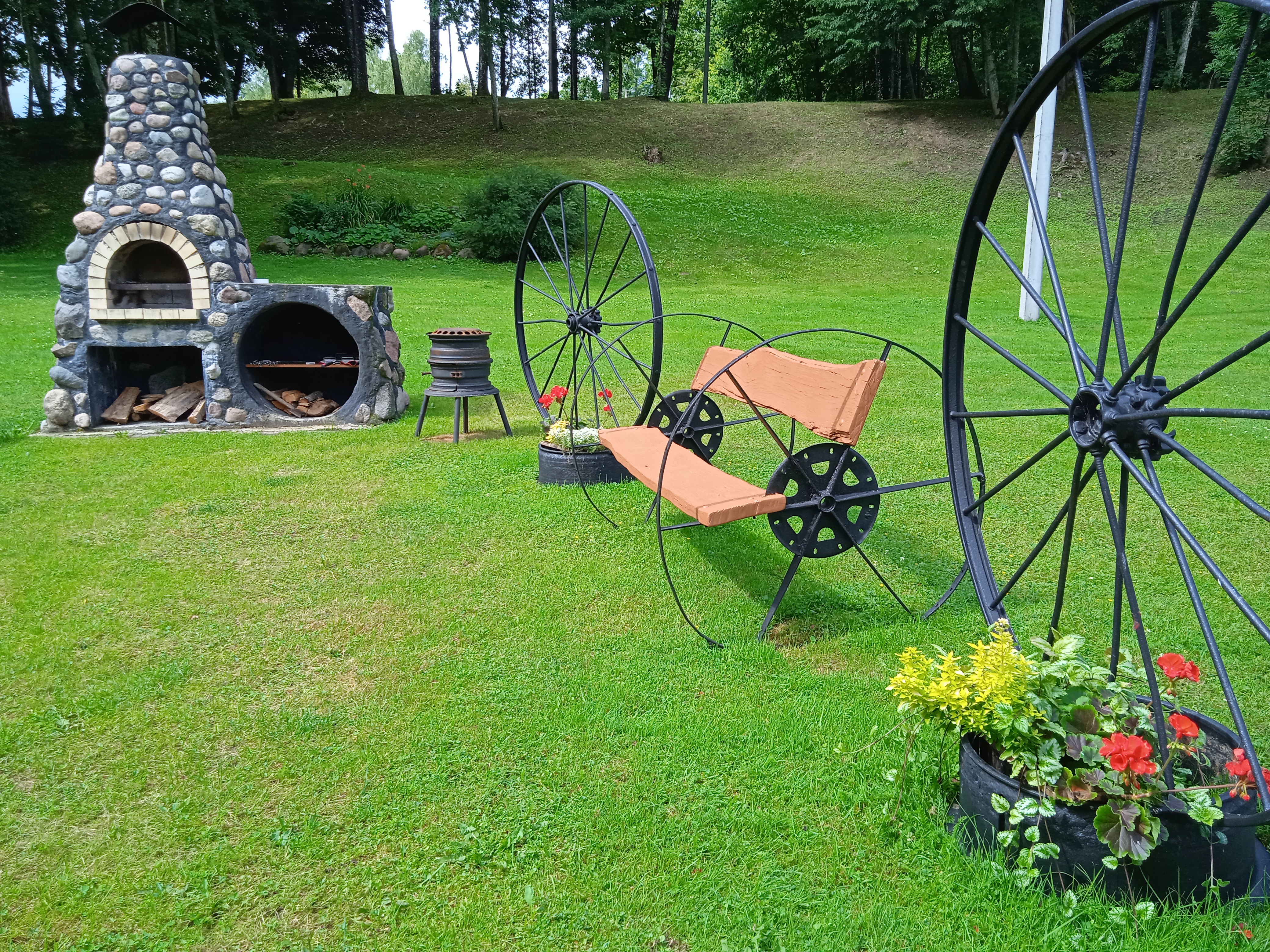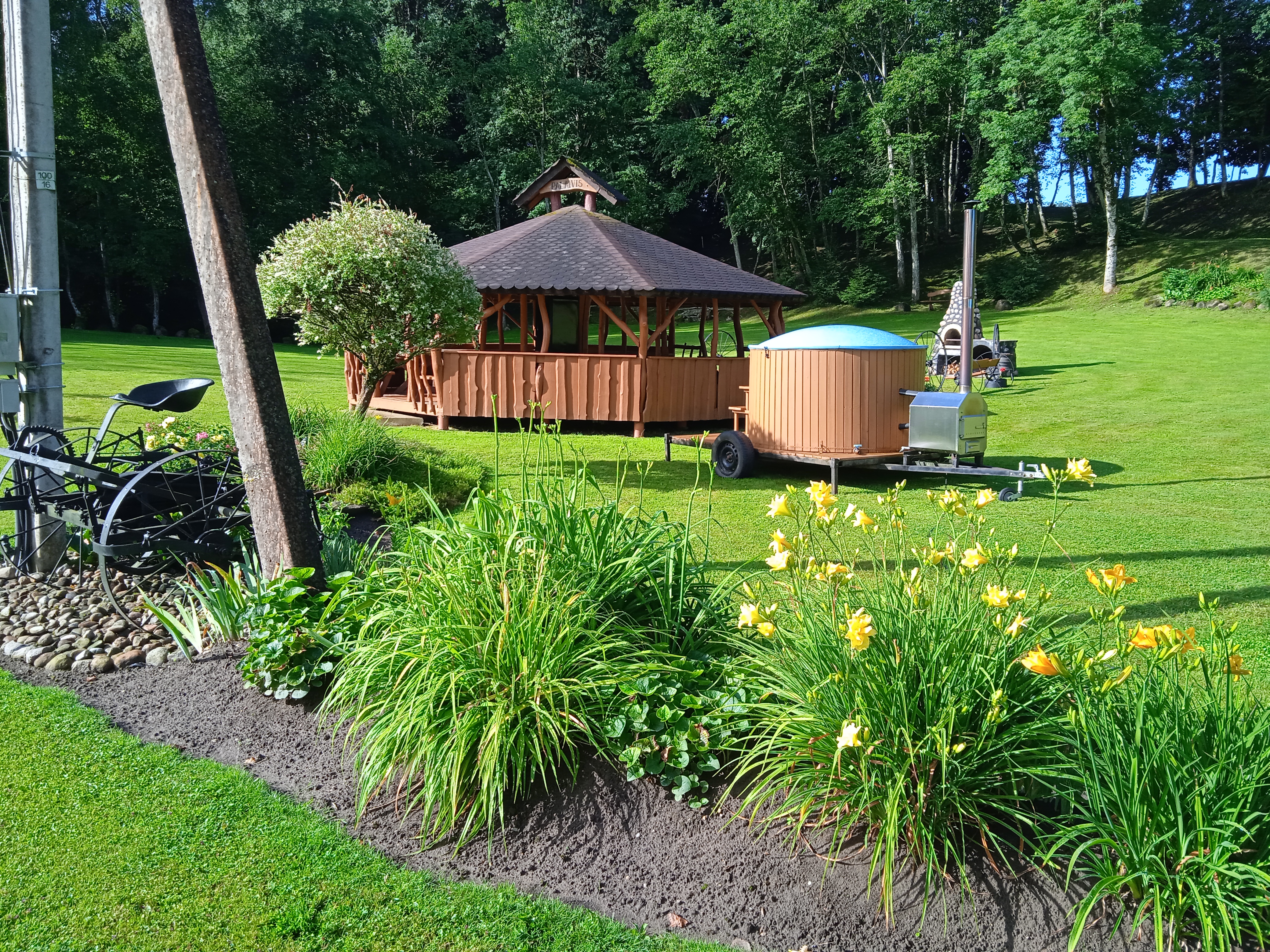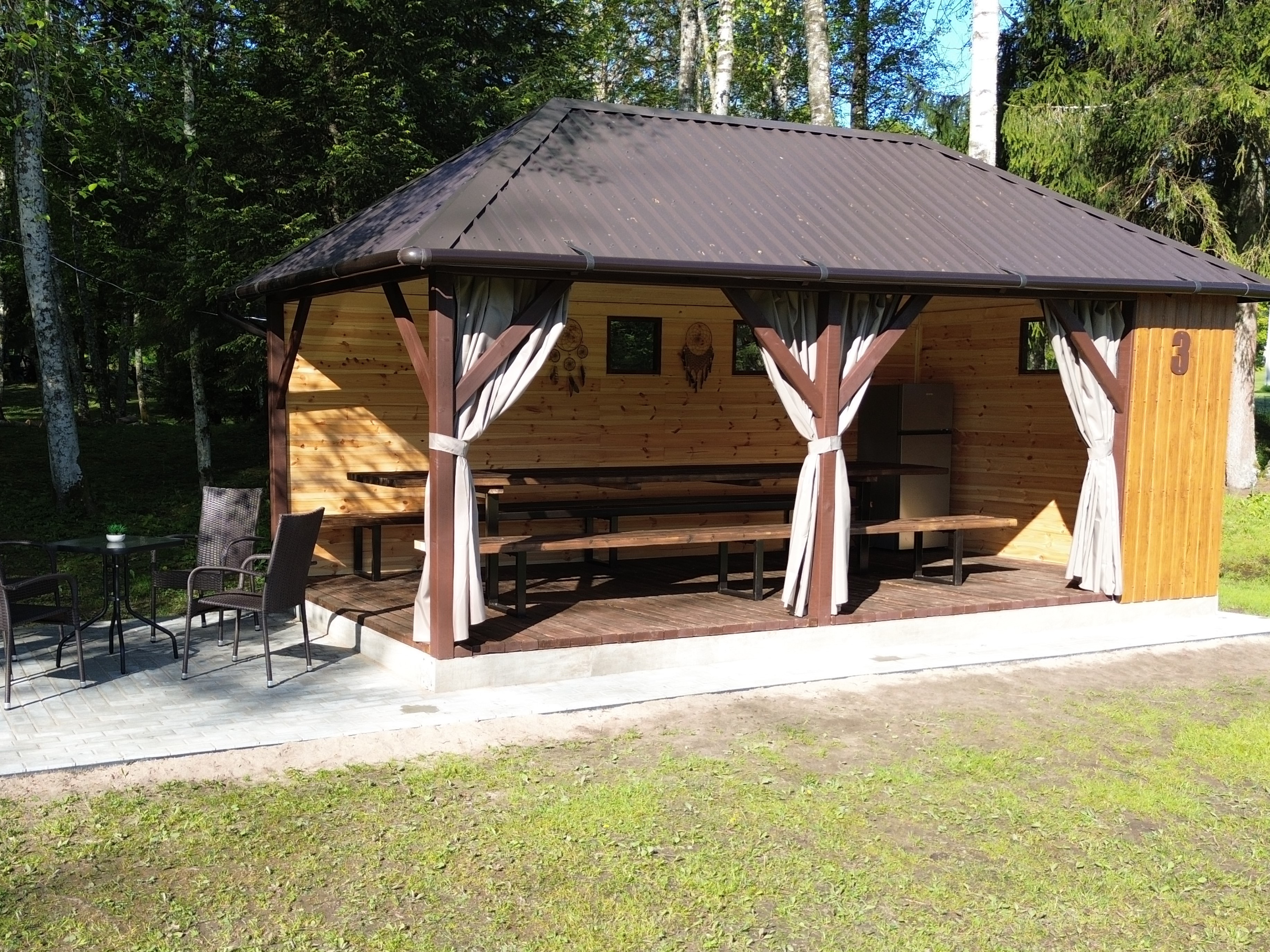 Didelė, iki 70 žmonių talpinanti pavėsinė – puiki vieta didesniems pobūviams, susitikimams ar sąskrydžiams. Yra elektra, šaldytuvas, lauko židinys, šašlykinė, iešmai, malkos, tinklinio aikštelė, krepšinis.